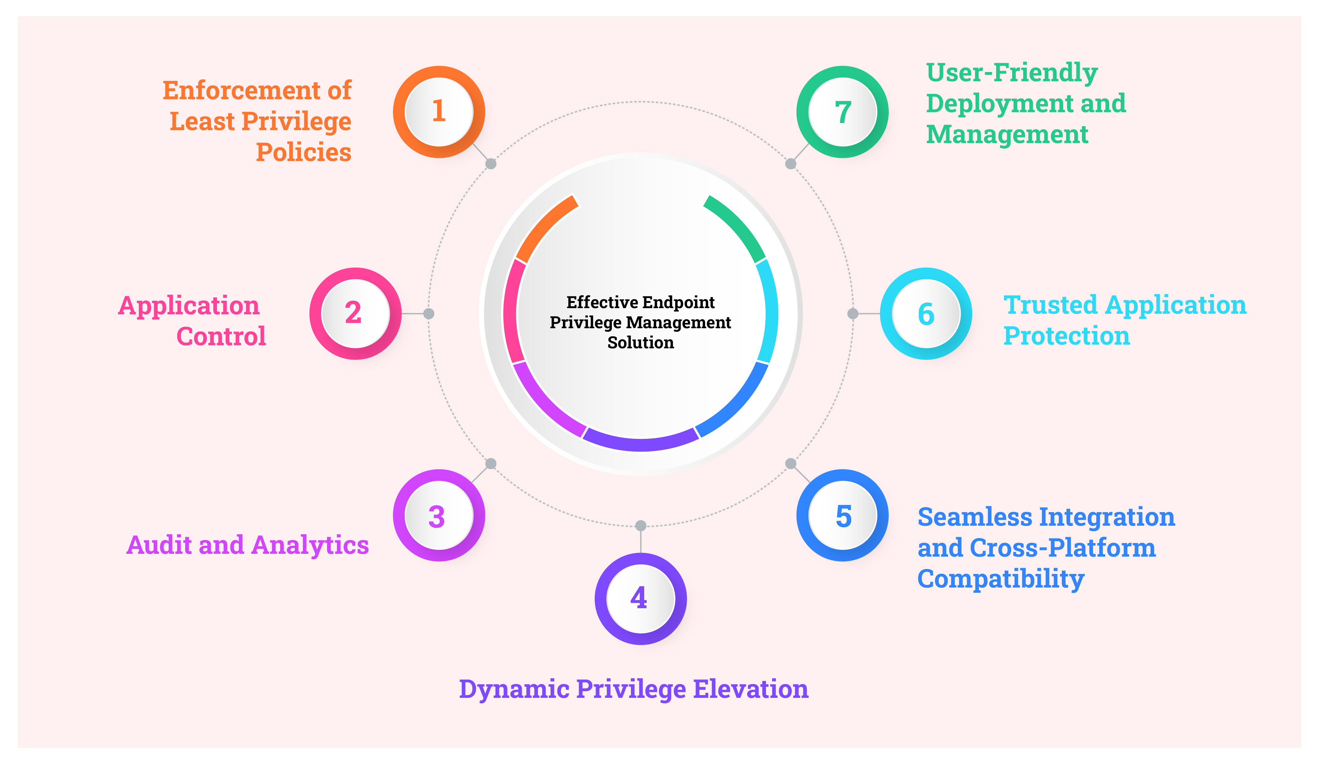 Implementing a successful Endpoint Privilege Management (EPM) strategy requires robust features designed to enhance security without disrupting user productivity. The following are the key components of an effective EPM solution: