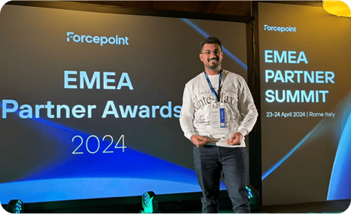The announcement has been made that Forcepoint has named us the esteemed Partner of the Year for 2023 at a grand function held in Rome. This prestigious award recognizes our exceptional dedication to data security and commitment to exceeding customer expectations.