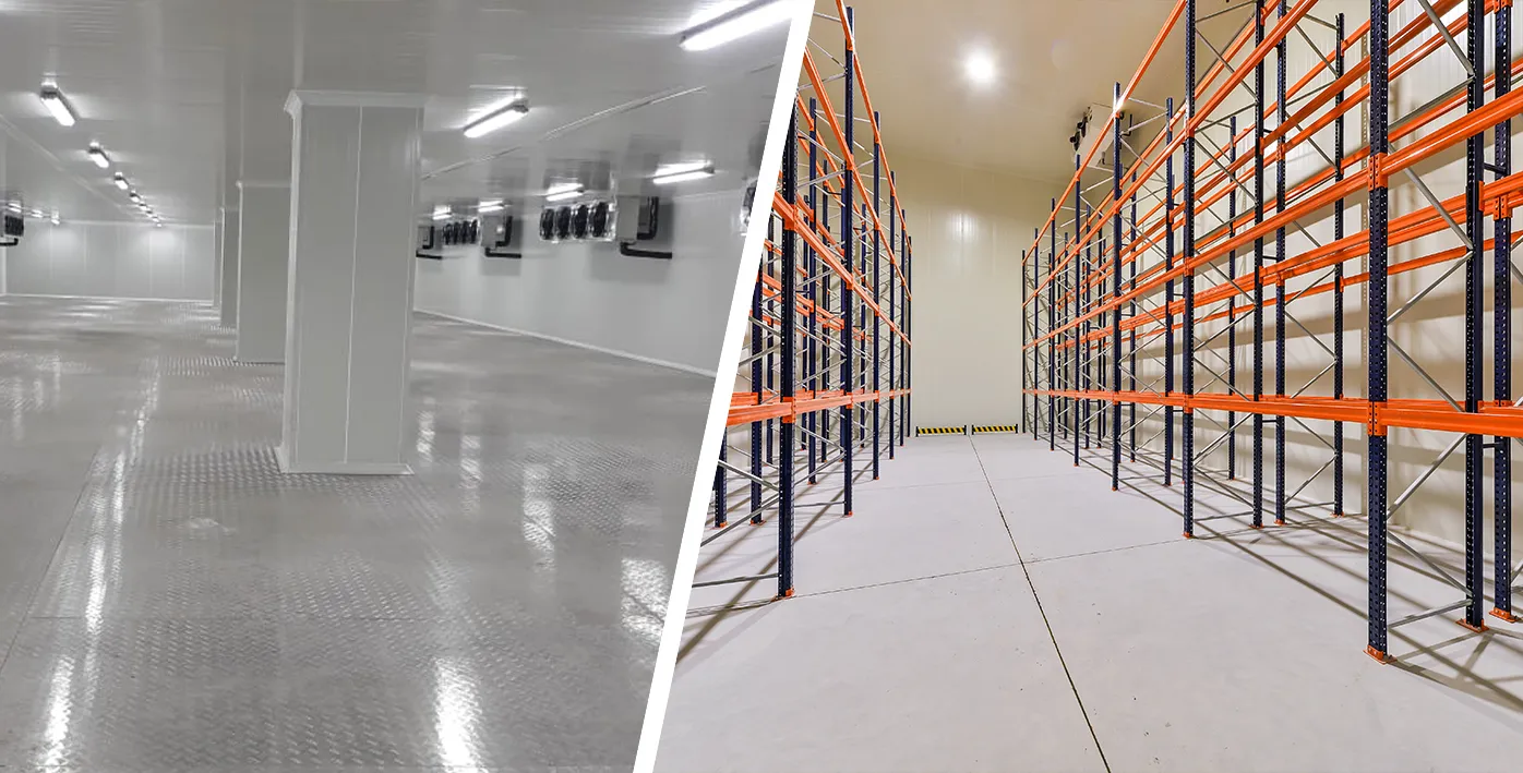 Usually, cold storages are equipped with an evaporator that removes heat from the cold room and a condenser that releases hot air. That is why having an efficient refrigeration system is important for maintaining stable temperatures. Moreover, depending on your need, you can choose a remote or centralised refrigeration system.