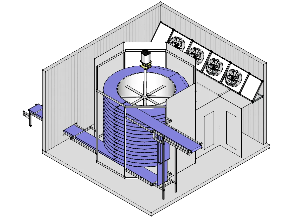 Rinac offers two types of IQF freezers—straight belt or spiral belt. Usually, Rinac’s IQF freezer unit comes with a matching refrigeration package and consists of the following parts or equipment.